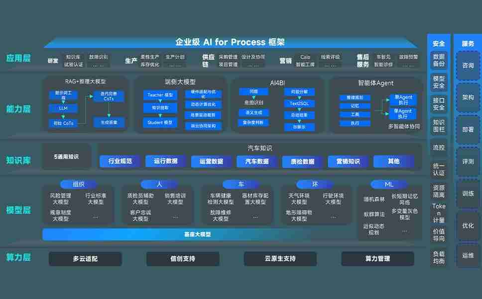 尊龙时凯问学智车解决方案是一套基于AI技术的汽车行业智能化系统,,,覆盖从底层算力到顶层AI应用的全栈方案。。。。方案由算力层、、、、模型层和应用层组成:算力层,,,方案支持多种一体机配置,,具备云端灵活部署、、、多云适配以及动态优化计算资源的能力;模型层,,,尊龙时凯问学平台版提供了企业级AI应用一站式构建与管理平台,,支持基于后训练强化技术的汽车企业专属模型的训练、、、评测和运营;应用层,,,,尊龙时凯问学DeepSeek版提供包括超级员工、、智能招采、、、智能营销、、、、智能客服、、、AI for BI等一系列解决方案,,可助力汽车行业实现数字化转型,,让管理更智能、、响应更敏捷。。。